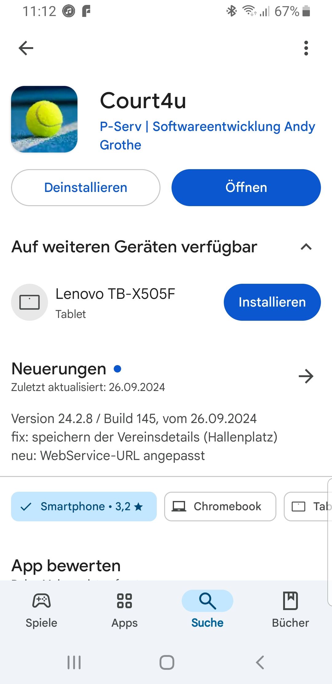 Wir arbeiten mit der Court4u-App.